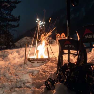 Abend-Schneeschuhwanderung mit Käsefondue am Lagerfeuer