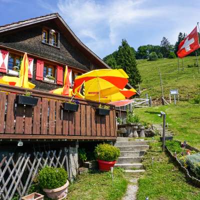 Die Alpwirtschaft Hüttenberg liegt im einmaligen Wandergebiet Atzmännig, direkt am Toggenburger Höhenweg auf 1058 m.ü.M.