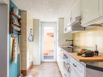 Wir haben die Wohnung mit einem restaurierten Küchenmöbel von unserem Wohnbereich abgetrennt. Das gute Möbelstück haben wir umfunktioniert, damit man durch das Kästli kommunizieren kann (beide Seiten können öffnen) und wir euch über die Durchreiche das Frühstück (auf Bestellung) bereitstellen können. Es ist uns wichtig, dass ihr als Gäste die uneingeschränkte Privatsphäre habt und trotzdem ganz unkompliziert mit uns in Kontakt treten könnt.