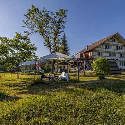 Mitten in Landwirtschaftszone liegt unser Traumhaus. Den freien Blick auf die sanften grünen (oder verschneiten) Hügel erfüllt uns täglich mit Glück und Dankbarkeit. Die jungen Rehe beim Spielen zu beobachten, ist das Grösste für uns. Wir leben hier in unserem kleinen Paradies... gerne teilen wir unsere Idylle, denn wie man so schön sagt: Geteiltes Glück, doppeltes Glück!