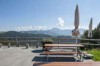 Nebelfreies Panorama-Bergrestaurant mit 40 Plätzen, weiteren 40 im Säli, 20 im Stübli und Terrasse mit 60 Plätzen.