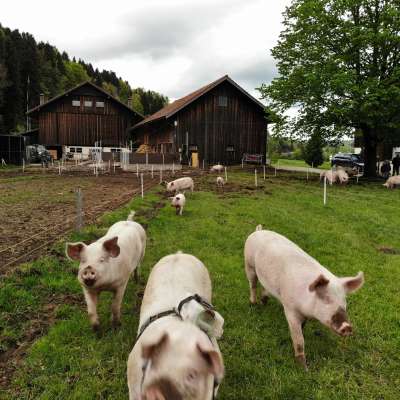 Natürlich steht auch der Hof offen, wer sich vor Ort die Schweine betrachten möchte und ist jederzeit herzlich Willkommen. Taucht in das Leben unserer Schweine ein und geniesst auf dem Glasboden-Stall gemütlich einen Kaffee, währenddem die Tiere beobachtet werden können.