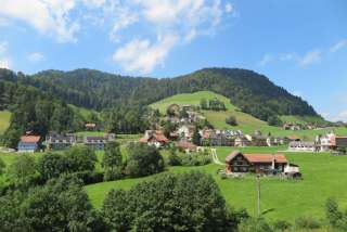 Dicken, ein ehemaliges Stickereidorf, gehört zur politischen Gemeinde Neckertal und hat ca. 350 Einwohner. Auf allen Seiten geht's über sonnenverwöhnte Hügel in die Höhe, was so manchen Wandervogel verzückt. Besonders stolz sind die Einheimischen auf die Wilkethöchi, ein lohnenswertes Aussichtsziel.