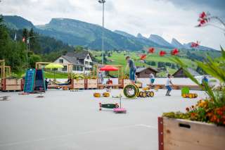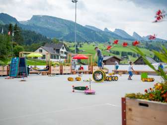 Spielfreude, Spass und kurzweilige Stunden garantiert der Erlebnisplatz beim Eissportzentrum in Wildhaus. Hier vergnügen sich Jung und Alt.