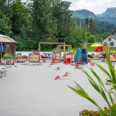 In den Sommermonaten verwandelt sich das Aussenfeld des Eissportzentrums in Wildhaus in einen grossen Spielplatz. Es stehen Gokarts und Pedalos bereit, die Slackline zum Balancieren ist gespannt, das Bergpuzzle liegt in seinen Einzelteilen parat, die Boule-/Petanquekugeln sind poliert und am Tischfussballkasten kann die Zeit vertrieben werden.