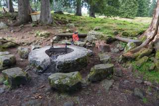 Der Grillplatz Zinggen liegt im Schatten einer hohen Fichtengruppe. Man hat einen schönen Blick auf die Churfirsten. Die Feuerstelle der Schweizer Familie ist rund gemauert und verfügt über einen rechteckigen Rost, der in drei Stufen in der Höhe verstellt werden kann. Grillhandschuhe sind dafür zu empfehlen. Rund um die Feuerstelle gibt es mehrere Stein und zwei Bänke zum Sitzen. Wenig Abseits gibt es eine weitere Bank mit Lehne. In einer Plastikkiste steht ein Holzvorrat zur Verfügung. Ein Mülleimer ist ebenfalls anzutreffen. Ist diese Feuerstelle besetzt, findet man einige Meter daneben eine wilde Feuerstelle, auf der man die Wurst an einem Stecken braten kann. Ein ToiToi-WC findet man am Wegrand. Kinderwagentauglich: ja, Holz: ja, Trinkwasser: nein, WC: ja, Kapazität: ca. 8