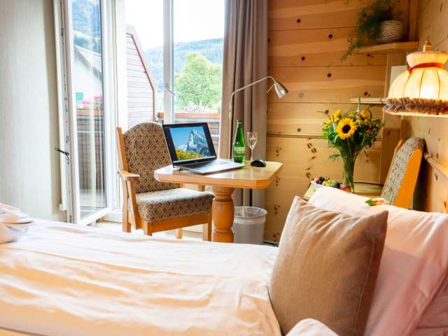 Das Bijou-Hotel im Dorfzentrum von Wildhaus verfügt über 26 heimelig eingerichtete Zimmer mit jeglichem Komfort. Die Mahlzeiten werden im gut bürgerlichen Hotel Restaurant mit Sonnenterrasse serviert. Die gemütlichen Zimmer sind alle mit hellem Föhrenholz ausgekleidet und mit viel Liebe zum Detail eingerichtet. Die etwas kleineren Nordzimmer sind ruhig und zur Bergseite gelegen. Die Südzimmer mit Balkon bieten Ausblicke auf den Schafberg und die Churfirsten-Kette.