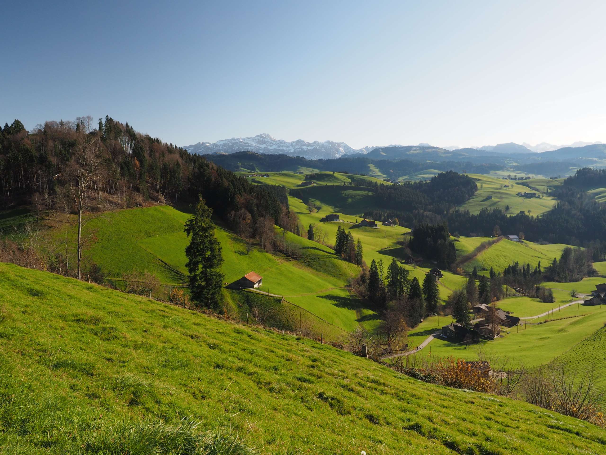 Der Aufstieg auf den Hochhamm und über Alpweiden auf die Hochalp wird durch die Rundsicht auf das mächtige Säntismassiv und weit über den Bodensee hinaus belohnt. Darüber laden die gemütlichen Wirtschaften auf den beiden zu einem Zwischenhalt ein. Auf dem abwechslungsreichen Appenzeller Alpenweg geht es weiter in Richtung Schwägalp. Einmal wird die Sicht auf das Appenzellerland frei, ein anderes Mal auf das Obertoggenburg. Ab der Passhöhe Schwägalp bestehen Postautoverbindungen ins Toggenburg und ins Appenzellerland.